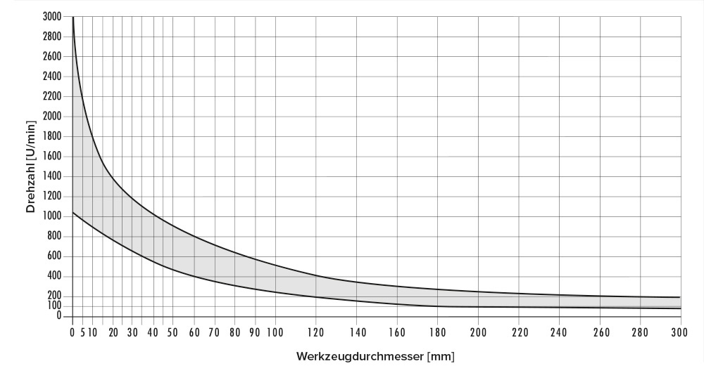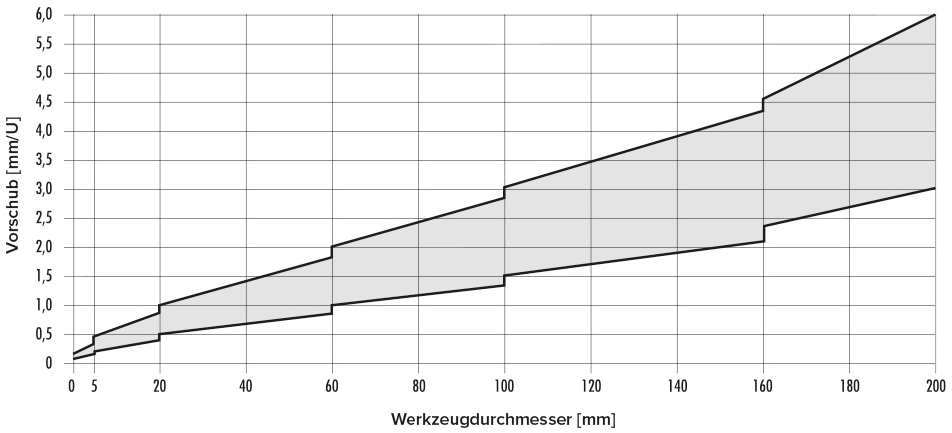 DREHZAHL- UND VORSCHUBDIAGRAMM FÜR MEHRROLLENWERKZEUGE