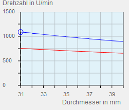 Bitte beachten Sie, daß es sich auch hierbei um Orientierungswerte handelt. Die Erfahrung hat gezeigt, dass unterschiedliche Randbedingungen wie Vorbearbeitung, Werkstoff, Schmierung etc.eine Abweichung von den empfohlenen Einsatzparametern bedingen können.
