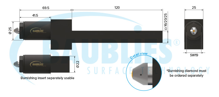Quickrequest: "Data sheet external diamond burnishing, straight"Diamond burnishing tools for external use