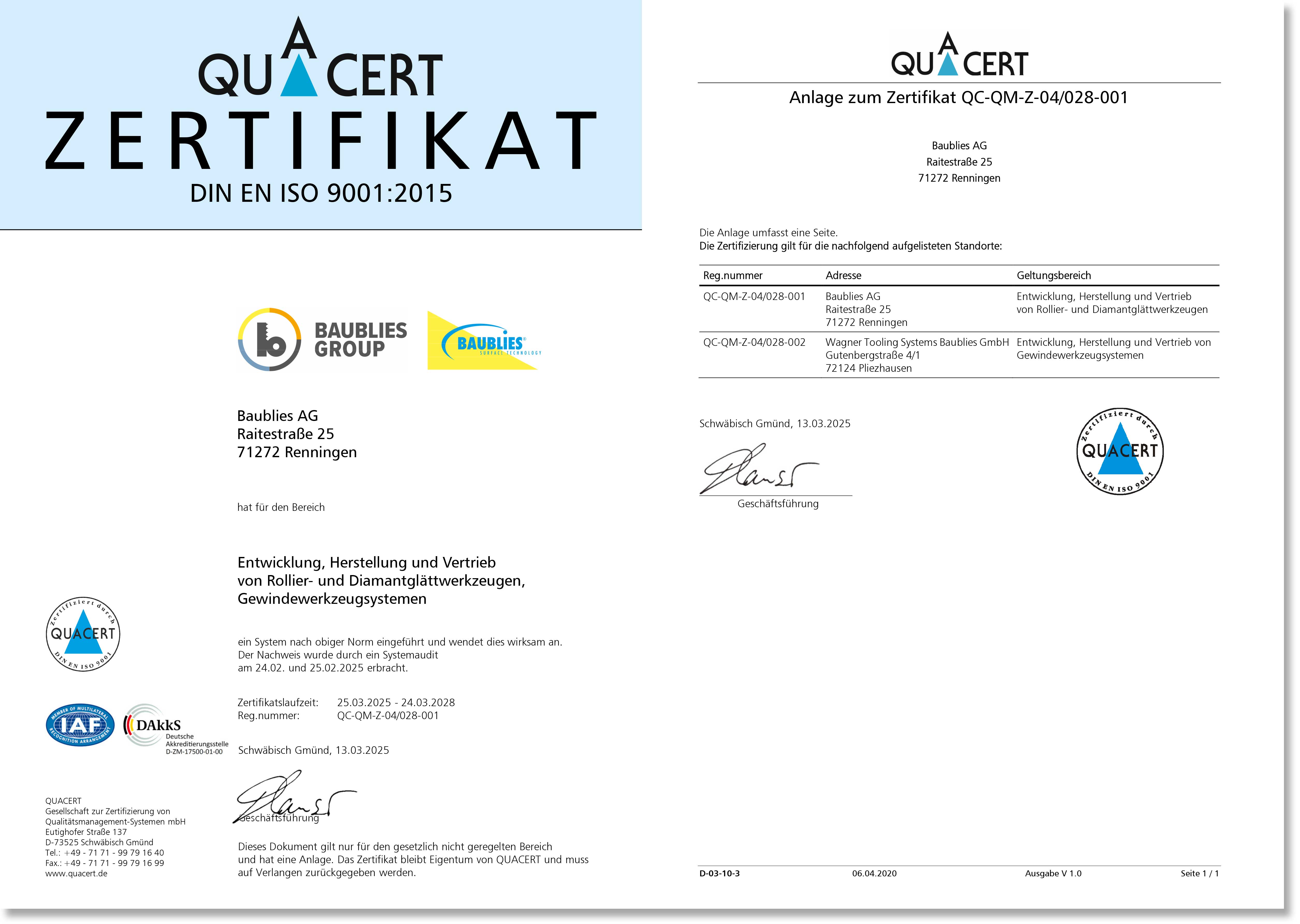 Die BAUBLIES AG ist zertifiziert nach DIN EN ISO 9001:2015