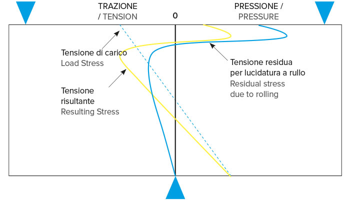Eseguendo questo processo di rifinitura, si modifica lo stato di tensione nello strato marginale del materiale.