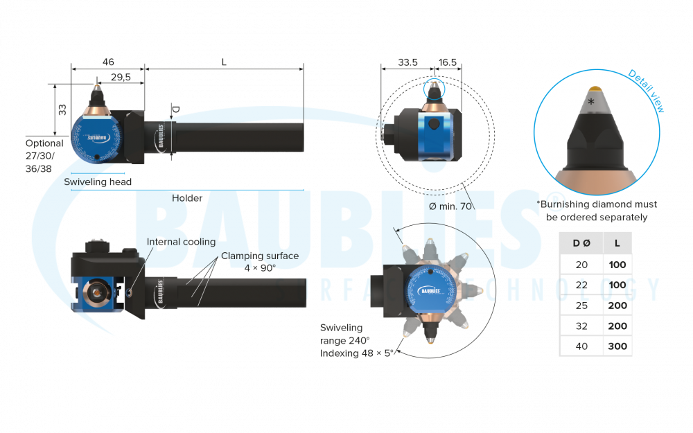 | Standard fixture | cylindrical shank Ø 20/22/25/32/40 mm |