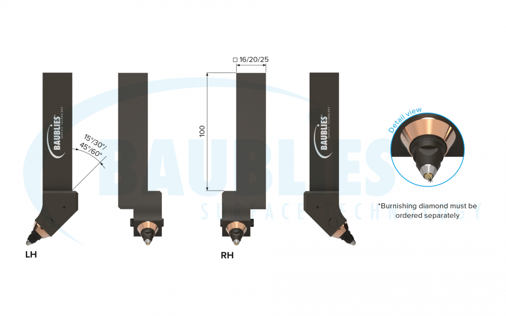 | Standard fixture | square shank 16/20/25 mm left hand or right hand angle 15°/30°/45°/60° |