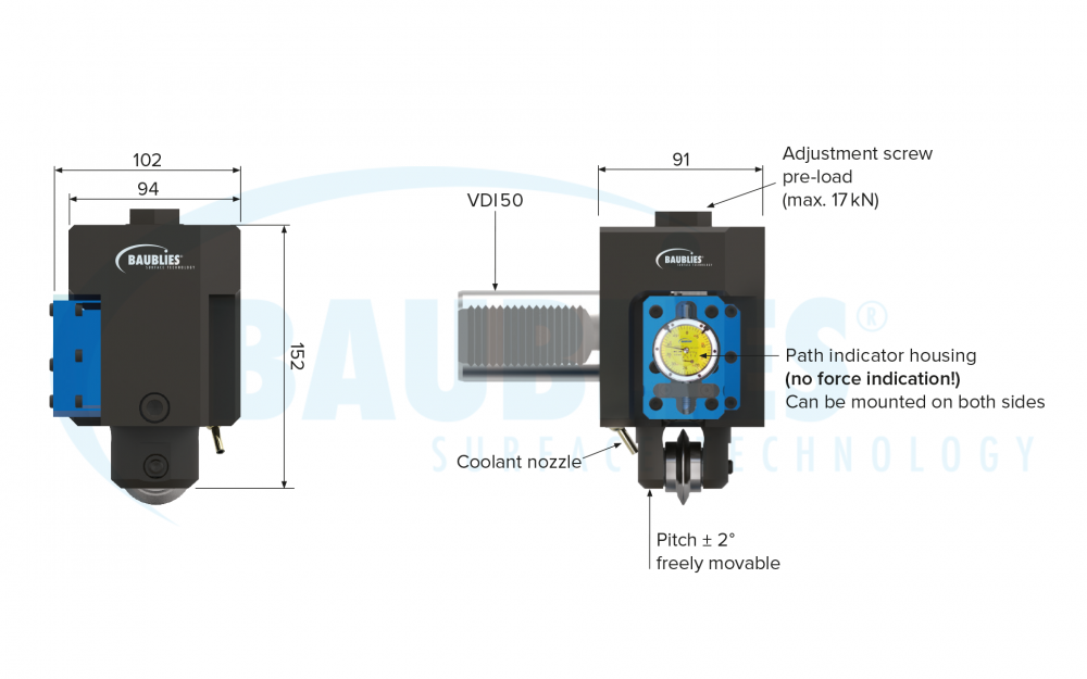In the case of cut threads, the course of the fibre of the workpiece is interrupted. With rolled threads, on the other hand, the fibre flow is not interrupted, thus the surface of the thread is hardened and the workpiece is less sensitive to notch effects. With the Baublies single roller tool for deep rolling of radii on threads, an increase in the dynamic strength properties can be achieved. The tool rolls the core radius of an external thread and thus hardens the surface. The result is higher wear resistance and the notch effect is minimized.