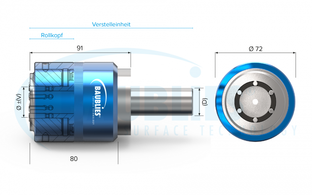 Standardmäßig erfolgt das Glätten der Oberfläche im Vorschub schiebend. Optional sind alle Außenrollierwerkzeuge auch für die ziehende Bearbeitung lieferbar.